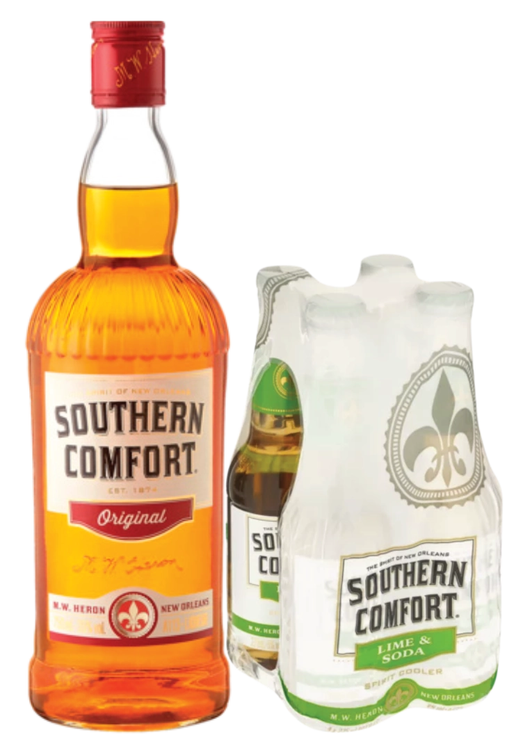 SOUTHERN COMFORT 750ML + FREE 4-PACK SOUTHERN COMFORT AND LIME RTD 275ML